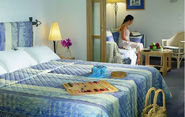 2-Bedroom Bungalow Sea View- Skriveni u bujnim vrtovima hotela, ovi elegantni bungalovi površine 60 m² imaju 2 udobne spavaće sobe s bračnim krevetom i krevetom na sprat s dnevnim boravkom s kaučem na razvlačenje koji se otvara na prostranu verandu s pogledom na more, pogodnu za 2-4 osobe.