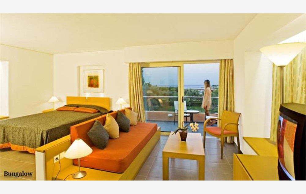 Bungalovi pogled bazen površine 29-33 m², namenjeni za smeštaj 2-4 osobe, sadrže kombinovanu dnevno spavaću sobu sa francuskim ili dva standardna ležaja i dva pomoćna ležaja. Sve sobe u hotelu tipa standardna, eden, bungalovi su po svojoj osnovnoj strukturi dvokrevetne, dok ostali ležajevi mogu biti pomoćni. U svim tipovima soba hotel prima bebu preko maksimum kapaciteta.