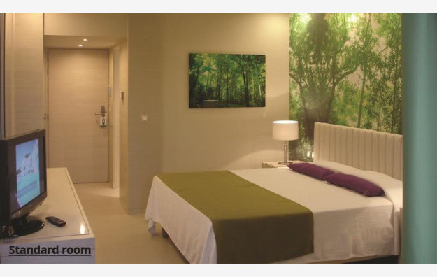 Hotel se sastoji iz glavne zgrade i bungalova. Raspolaže sa ukupno 354 smeštajnih jedinica. Sve sobe poseduju kupatilo, fen za kosu, mini frižider, ketler, klima uređaj, mini bar napunjen po dolasku, SAT TV (plazma ekran), Wi Fi internet, telefon, balkon.