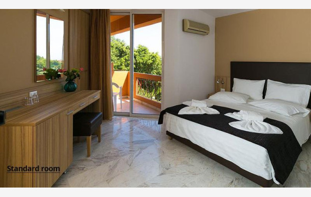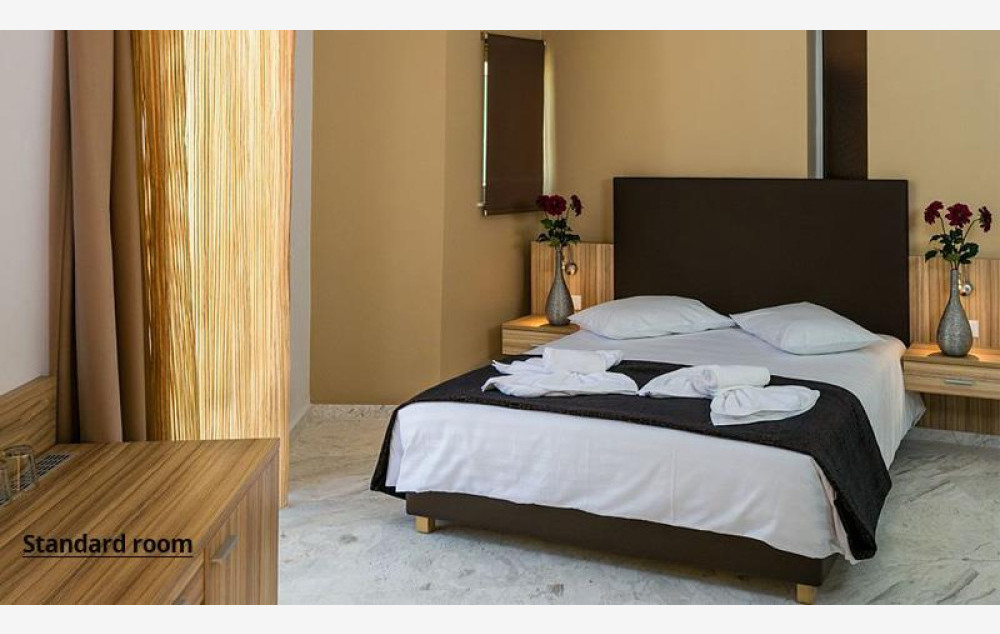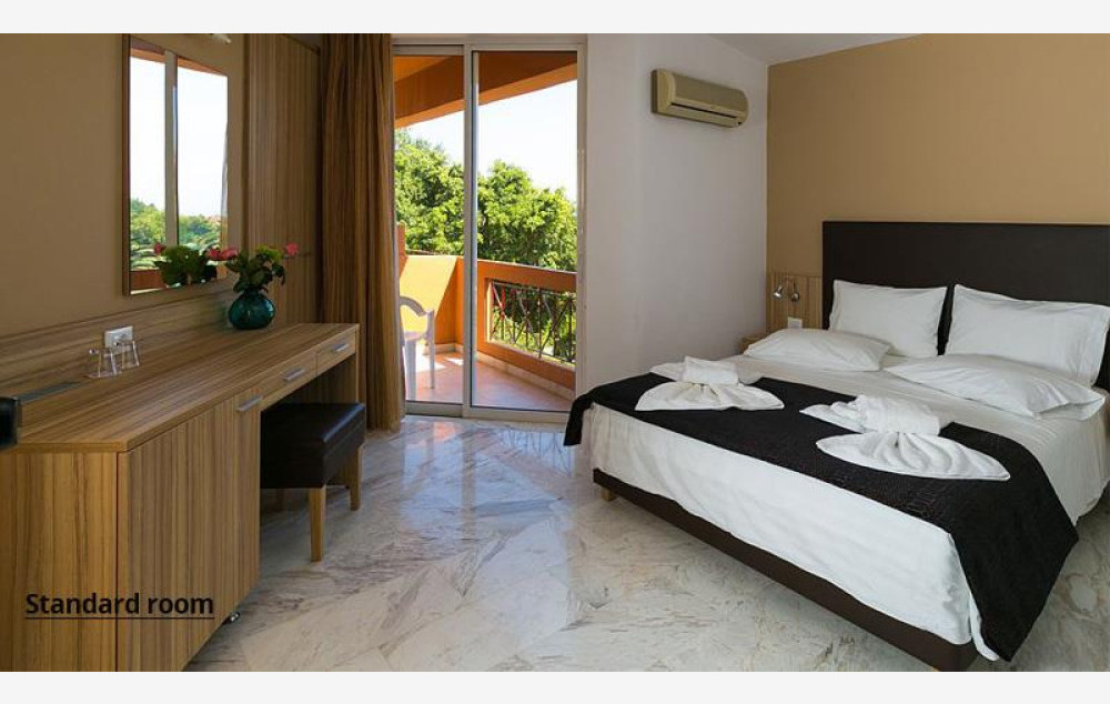 Hotel raspolaže sa 30 soba uređenih u tradicionalnom stilu. Standardne sobe sadrže: klima uređaj (uključen u cenu), Wi-Fi (uključen u cenu), TV prijemnik, kupatilo sa tušem ili kadom, sef (uz doplatu 2 evra dnevno), frižider, balkon ili terasu.