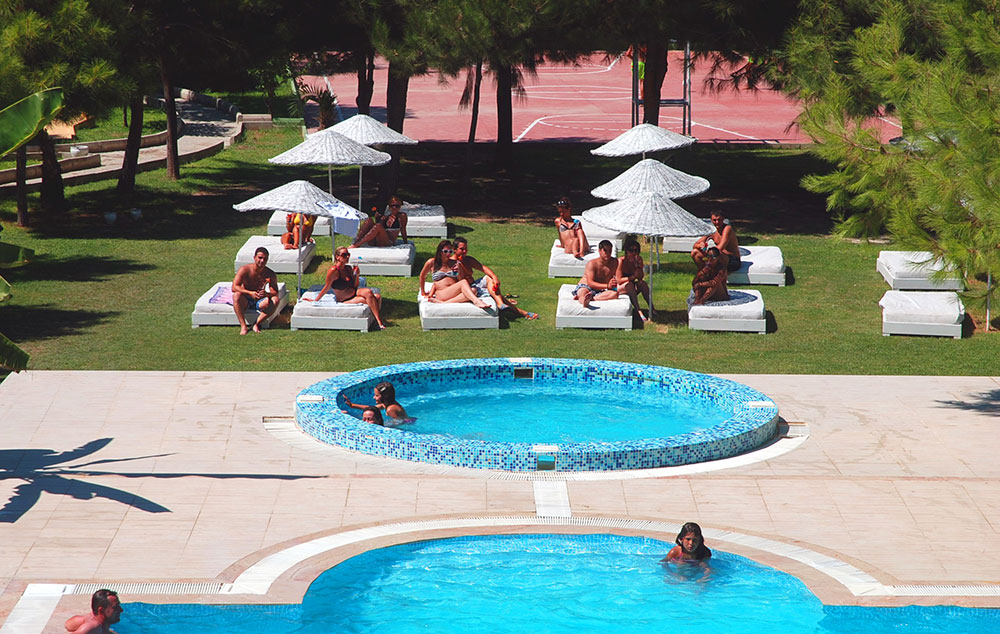 Hotelski sadržaj: recepcija, restoran, 2 bara - loby bar, bar pored bazena, 2 bazena, sa delom za decu, bazen za decu, besplatne ležaljke i suncobrani pored bazena, tobogani, jakuzzi, igralište za decu, tenisko igralište, stoni tenis, bilijar, mini golf, odbojka na plaži, basket, mini klub za decu, diskoteka, hotelska animacija, wi fi, parking.