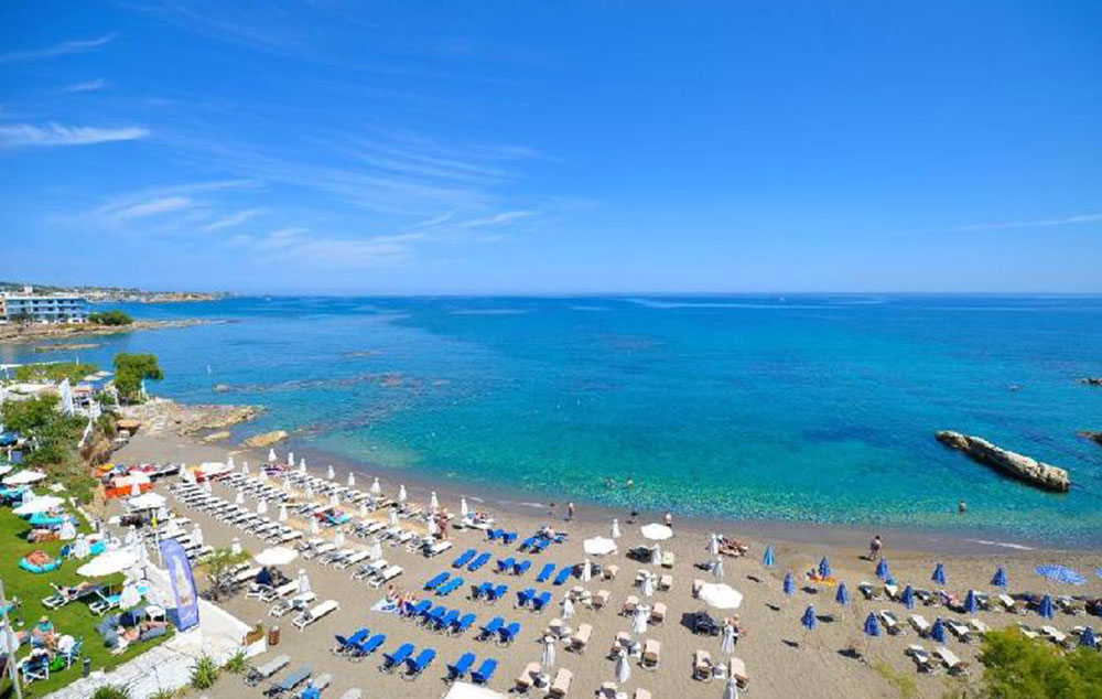Na samom šetalištu letovališta Hersonissos koji deli hotel od uređene, komforne, peščane plaže. Ovaj hotel modernog dizajna i enterijera pastelnih boja pruža prijatan boravak u hotelu na samom šetalištu, a iz čijeg restorana se pruža lep pogled na kristalno bistro kritsko more i čarobne kritske zalaske sunca. Od aerodroma u Heraklionu udaljen je 25 km.