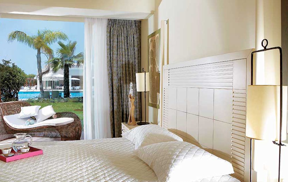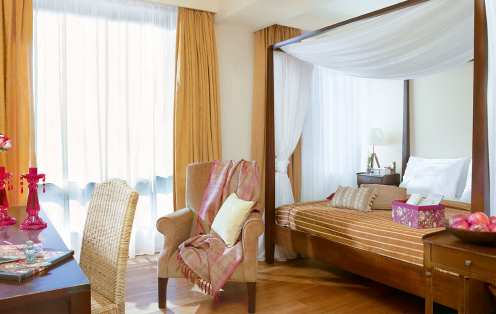 Premier Sea View Room - oko 26m2, nalazi se u glavnoj zgradi sa opremnjenom terasom i pogledom na more. Opremenjena je sa francuskim ili dva odvojena kreveta. Namenjena za 2-3 osoba.