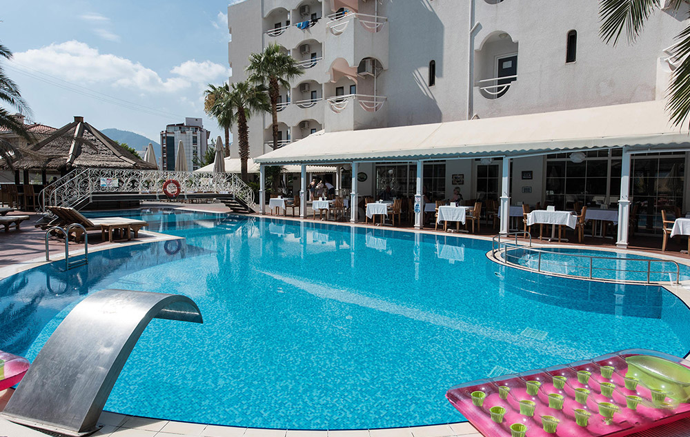 Položaj: hotel je udaljen 35m od plaže, u centru Marmarisa, 133km od aerodroma u Bodrumu. Delimično je renoviran 2015. godine.