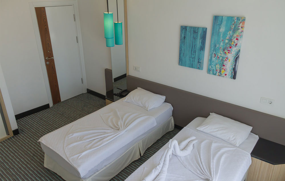 Sobe: standardne sobe dvokrevetne za maksimalno četiri osobe, opremljene sa dva standardna ležaja ili francuskim ležajem i jednim ili dva pomoćna ležaja od kojih jedan može biti i sofa na razvlačenje. Sobe poseduju kupatilo (Tuš WC i fen za sušenje kose), klima uređaj, telefon, TV, mini bar.