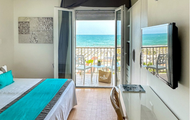 Položaj : Hotel se nalazi u mestu Riccione, od stanice gradskog autobusa udaljen je 20 m, a od plaže 30 m.Korišćenje ležaljki i suncobrana je uključeno u cenu aranžmana ( 2 ležaljke i suncobran po sobi).