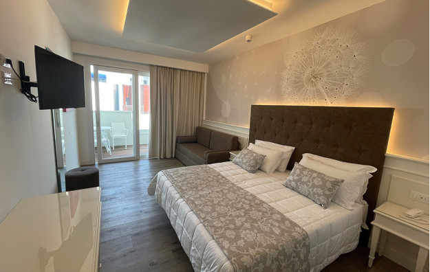 Deluxe 2/3 + krevetac-veličine 18 m2 - renovirana soba sa balkonom i delimičnim pogledom na more.