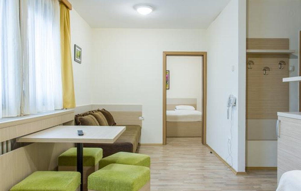 Svi apartmani sadrže kupatilo, dnevni boravak, televizor sa plazma ekranom. Namenjeni su za smeštaj 2-6 osoba. Sastoje se od predsoblja, dnevnog boravka, spavaće sobe i kupatila. Apartmani tipa A imaju 25 m2 a tipa B 35m2.