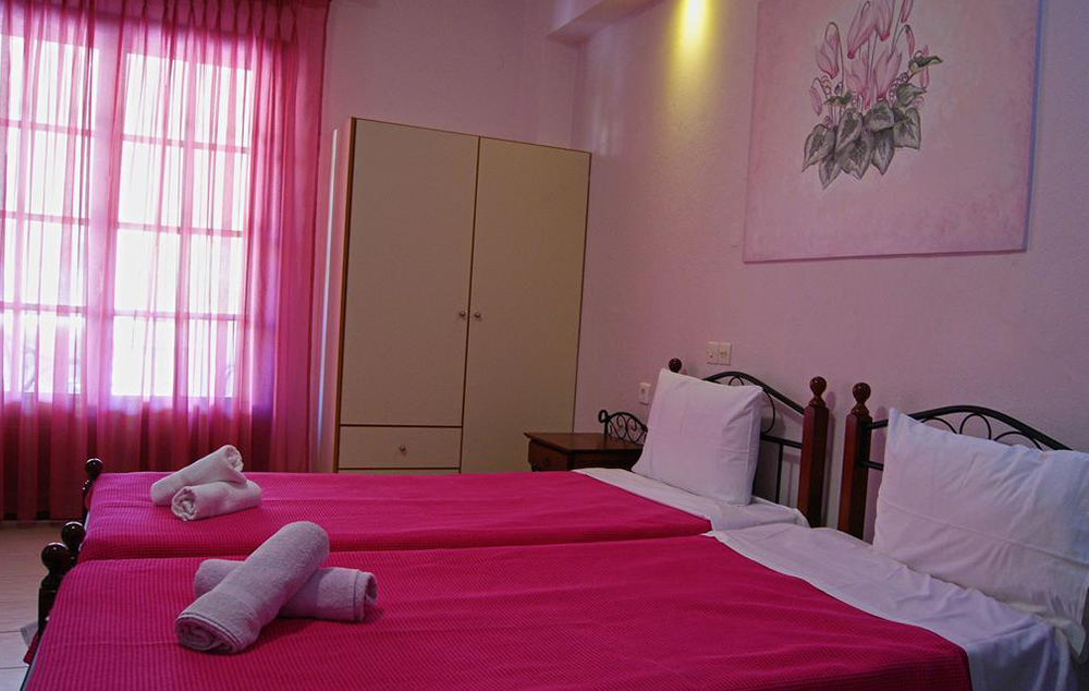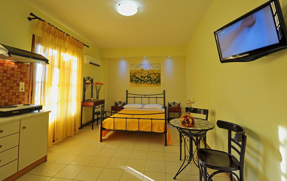 Opis: Smeštajne jedinice u našoj ponudi su dvokrevetni i trokrevetni studiji, a nalaze se u prizemlju i na drugom spratu . Svaki studio poseduje opremljen kuhinjski deo, kupatilo/wc, peškire, terasu (jedan studio ima sopstvenu terasu, ali nema direktan izlaz na nju), TV, WiFi internet i klima uređaj (uz doplatu na licu mesta od 5€ dnevno).