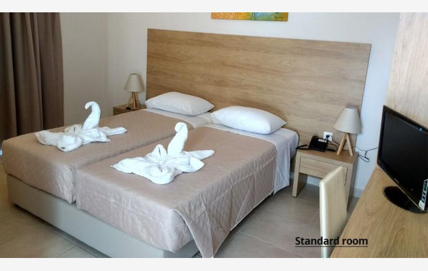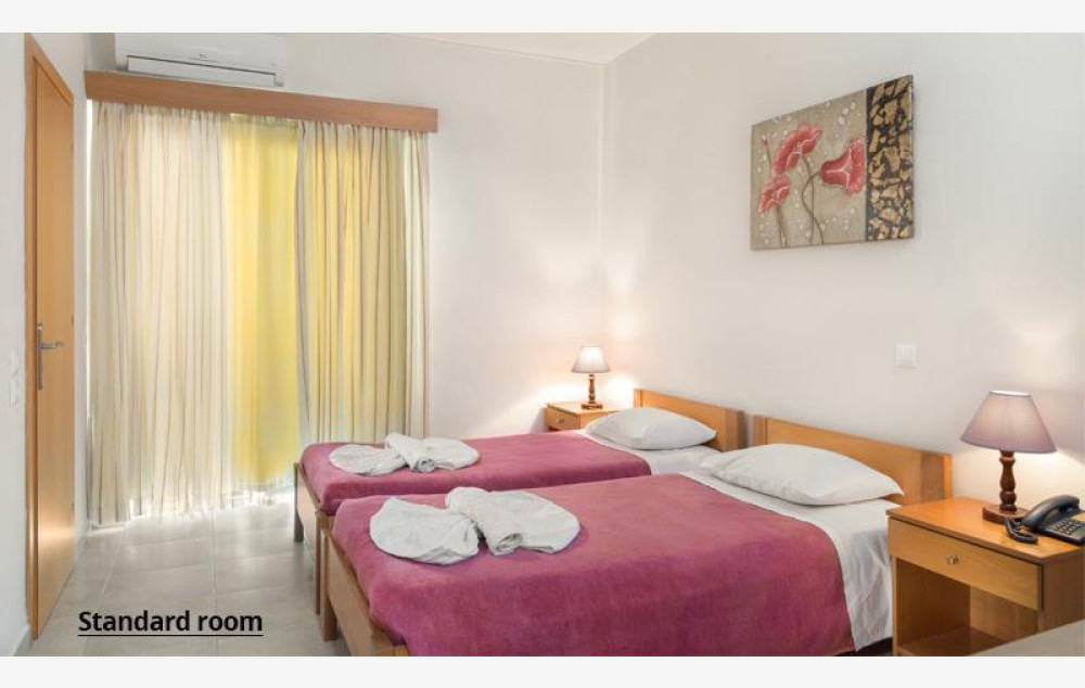 Hotel raspolaže sa 42 smeštajne jedinice. Sve sobe sadrže klima uređaj (uz doplatu 5 evra dnevno), SatTV, telefon, Wi-fi internet besplatno, mini frižider, sef (besplatno), kupatilo, balkon ili terasu. U ponudi su standardne sobe koje sadrže francuski ili dva odvojena ležaja i primaju maksimalno dve osobe.