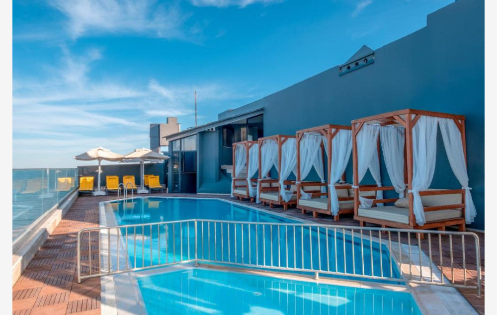 Hotelski sadržaj: recepcija, restoran na krovu hotela sa prelepim pogledom na more, a la cart resotran, 3 bara - loby bar, bar pored bazena, snack bar, bazen na krovu hotela sa odvojenim delom za decu, ležaljke i suncobrani pored bazena, salon lepote, wifi u holu hotela, parking (besplatan).