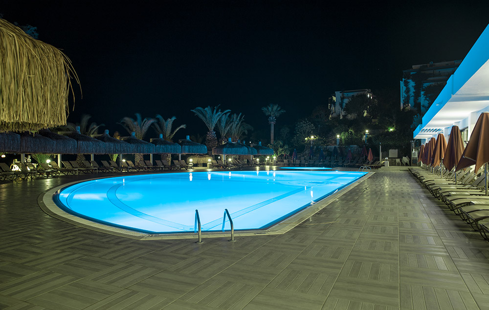 Sadržaj: recepcija, lobi, glavni restoran, al a carte restorani (riblji i italijanski, besplatno uz rezervaciju), 4 bara, poslastičarnica, 2 otvorena bazena sa odeljkom za decu, bazen sa 2 tobogana, internet u lobiju hotela (besplatno), mini-klub, animacija (dnevna i večernja), dečije igralište, vitamin bar, spa, tursko kupatilo, sauna, parno kupatilo, fitnes, aeobik, gimnastika, step-aerobik, kanu, jedrenje, pedaline, vaterpolo, teniski tereni, košarka, mini-fudbal, odbojka na pesku, mini-golf, stoni tenis, lekar, prodavnice,