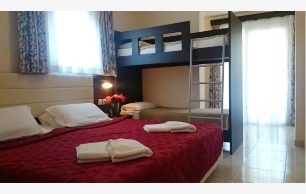 Quadruple room – Komforne sobe otvorenog tipa, površine 20-25 m2, s bračnim ili dva odvojena kreveta i krevetom na spratza 3. i 4. osobu, smeštene u prizemlju s izlazom na nameštene balkone s pogledom na dvorište hotela, šumu i okolinu.