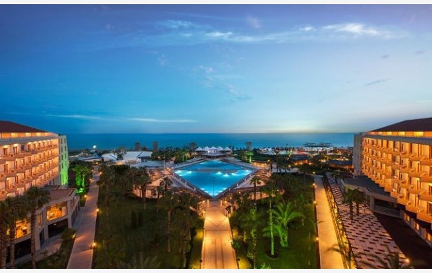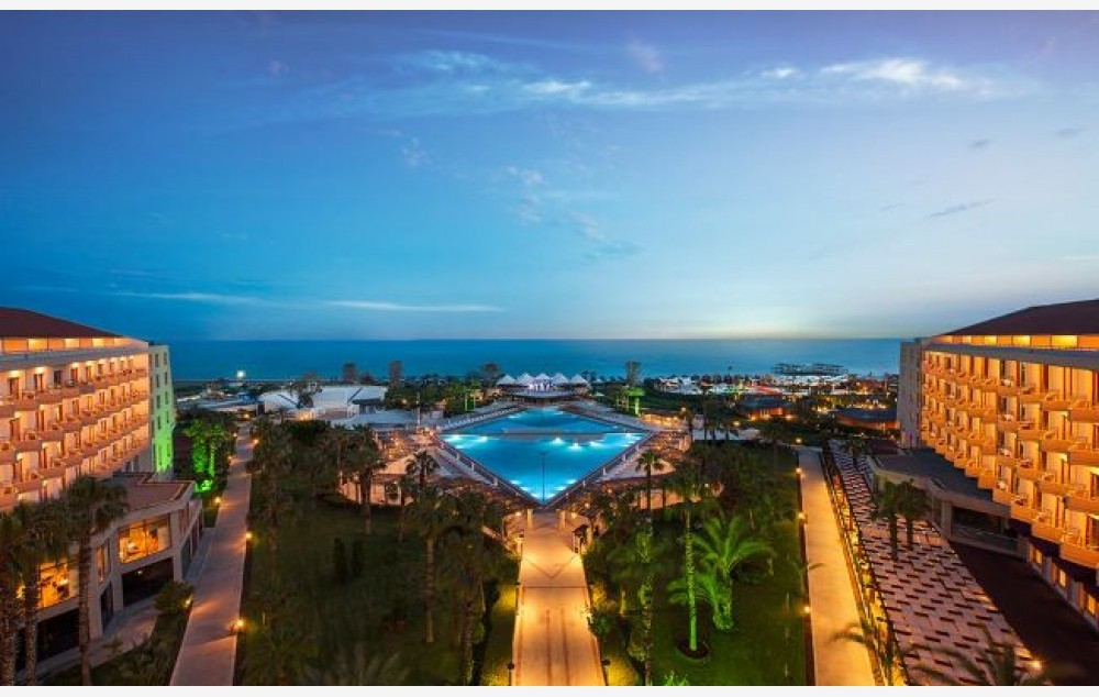Hotelski sadržaj: Recepcija, 2 glavna restorana, 2 a la carte restorana, dijetalni meni, 13 barova, 2 unutrašnja i 5 spoljašnjih bazena, 5 dečijih bazena, 6 đakuzija, akva park sa 19 tobogana (10 dečijih), bioskopska sala, dnevne i večernje animacije, mini klub (za decu od 4-12 godina), teenage klub (za decu od 13-17 godina), mini disko, igraonica, aerobic u vodi, bocanje, pikado, stoni tenis, odbojka na pesku, teniski teren, košarka, tursko veče, hamam, sauna, parna soba, teretana, bilijar (uz doplatu), wi fi (u lobiju).