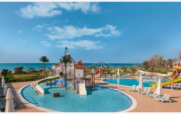 Hotelski sadržaj: Recepcija, glavni restoran, a la carte restoran, bar pored bazena, bar na plaži, bazen za odrasle, dečiji bazen, dva tobogana, dečije igralište, dnevnu animaciju, večernji mini disko, fitness, tursko kupatilo, saunu, stoni tenis, bilijar, wi fi se doplaćuje.
