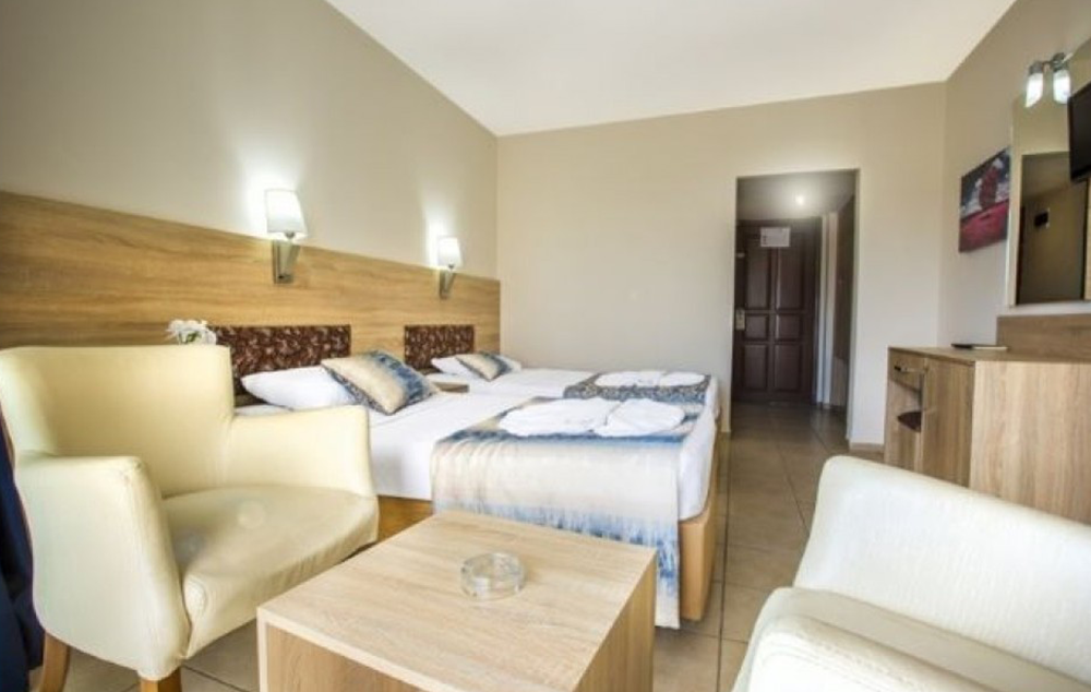 Smeštaj: Hotel raspolaže sa 223 soba. Sastoji se iz dve petospratne zgrade. A blok se nalazi na plaži, dok je B blok preko puta ulice (postoji podzemni prolaz koji vodi do plaže).