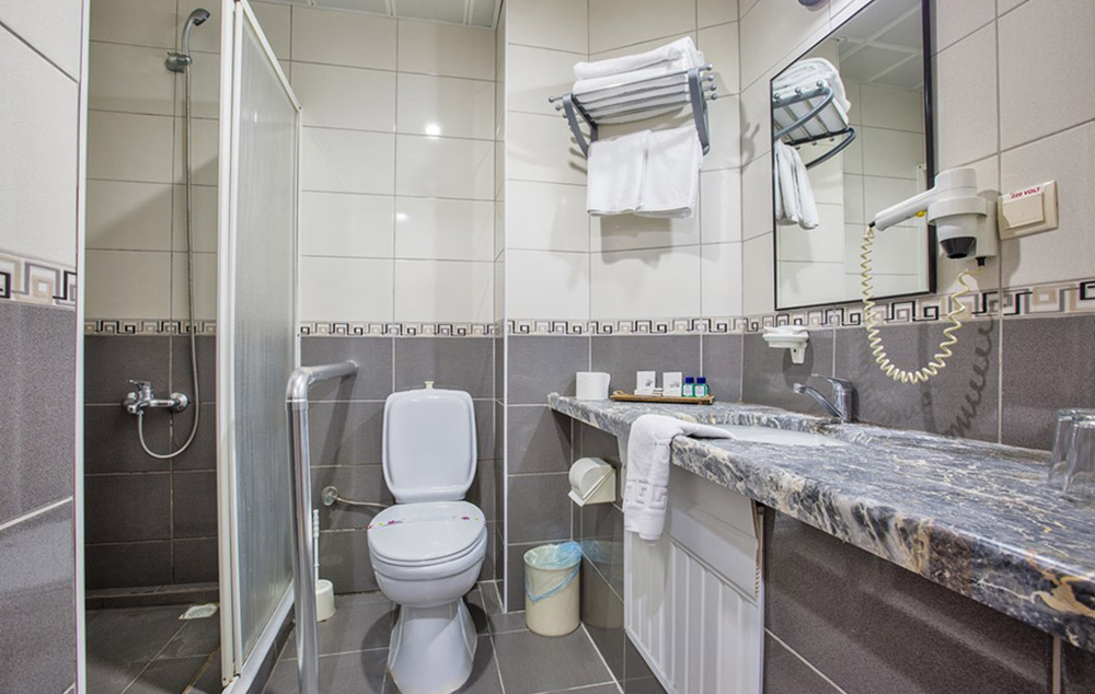 Svaka soba ima: Kupatilo sa tušem/wc, klimu, fen, SAT/TV, telefon, mini bar (samo voda besplatno), sef (uz doplatu), balkon.