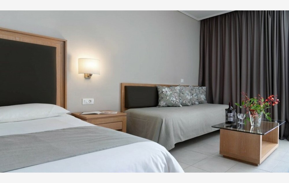 Family room main building bay view-36 m2, sa pogledom na Marinu Guviju i zelena brda Krfa, ima spavaću sobu sa bračnim krevetom i dnevnu sobu sa 2 spavaće sobe, odvojene kliznim vratima *** Porodične sobe imaju minimalnu popunjenost od 3 osobe.
