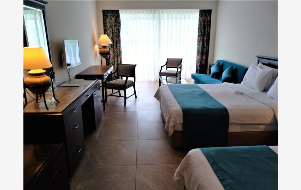 Standardne sobe u glavnoj zgradi mogu imati pogled na baštu ili na more, površine od 26-32 m². Maksimalno borave 3 odrasle osobe. Standardne sobe u bungalovima su sa pogledom na baštu, površine od 26-32 m². Maksimalno borave 2 odrasle osobe i 1 dete do 3 godine. Superior sobe u glavnoj zgradi su sa delimičnim pogledom na more, površine 26-32 m². Maksimalno borave 2 odrasle osobe i 1 dete do 3 godine. Porodične sobe u bunglaovima su sa pogledom na baštu, površine 48-54 m² i sastoje se od dve prostorije odvojene vratima. Maksimalno borave 4 odrasle osobe. Superior porodične sobe u bungalovima su sa pogledom na baštu, površine 48-54 m² i sastoje se od dve prostorije odvojene vratima. Maksimalno borave 4 odrasle osobe i 1 dete do 12 godina.