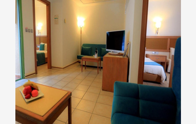 Sobe: Hotelski kompleks ima ukupno 441 sobu koje su rasporedjene u dve trospratne glavne zgrade i u bungalovima. Sve sobe su klimatizovane i imaju kupatilo (Tuš WC i fen za sušenje kose), sat TV, mini-bar, balkon, wifi.