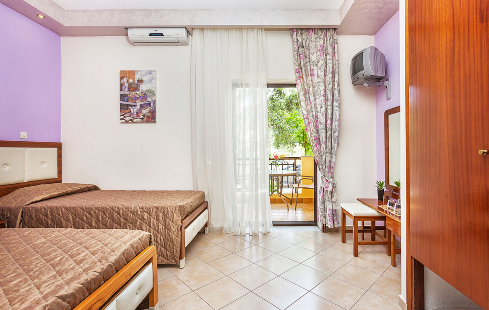 Standard room garden view: 24 m², smešten u prizemlju, s bračnim ili dva odvojena kreveta za 2 osobe, sadrži potpuno opremljen kuhinjski deo.
