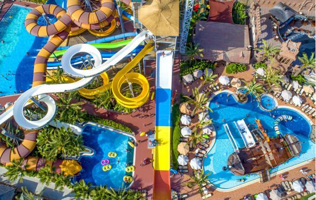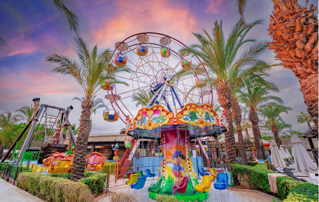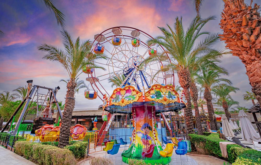 Hotelski sadržaji: Recepcija, glavni restoran, 5 a’la carte restorana (italijanski, riblji, meksički, dalekoistočni i turski-besplatno jednom u toku boravka uz rezervaciju), dijetalni meni, dečiji meni, 16 barova, poslastičarnicu, kafe korner, 13 bazena za odrasle od kojih je jedan sa slanom vodom, 5 dečijih bazena od kojih je jedan sa slanom vodom, akva park sa toboganima za odrasle i decu, dečije igralište, mini klub (4-12 godina), luna park, dečije igralište, mini disko, dnevna i noćna animacija za odrasle i decu, spa centar, sauna, teretana, tursko kupatilo, aerobik, akvabik, đakuzi, streličarstvo, 2 teniska terena, mini golf, košarka, odbojka na pesku, pikado, mini fudbal, stoni tenis, šah, kuglanje, bioskop, wi fi.