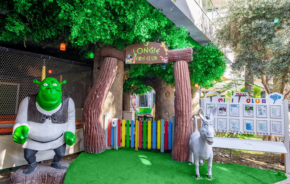Hotelski sadržaj: Recepcija, glavni restoran, a la carte restoran, lobby bar, bar pored bazena, bar na plaži, bazen sa toboganima i odvojenim delom za decu, poslastičarnicu, mini klub za decu 4-12 god., mini disko, animaciju za decu i odrasle, noćnu animaciju, spa centar (teretana i sauna besplatno, ostalo uz doplatu), wi fi u lobiju je besplatan.
