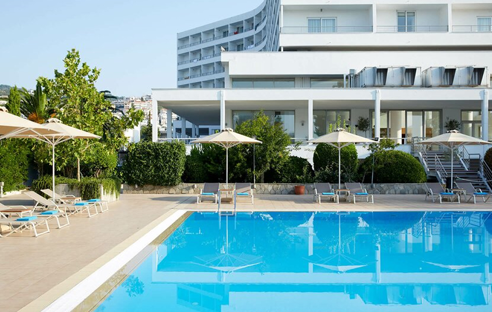 Hotel Lucy je izgrađen na zapadu Kavale, i zbog svoje arhitekture i povoljne lokacije predstavlja jednu od gradskih znamenitosti. To je impozantna zgrada sa 8 spravota, 149 soba, četiri restorana i barova, sala za konferenciju … Svojom idealnom lokacijom na zapadnoj strani grada pored mora, nudi spektakularan pogled na zaliv i peščane plaže Kavale. Zbog blizine grada i komercijalnog centra pruža idealan odmor i poslovnim putnicima. Kompletno je renoviran u maju 2009. godine i sada predstavlja hotel sa 5*. Hotel posluje tokom cele godine.