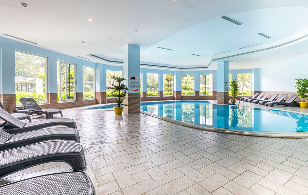 Hotelski sadržaj: Hotel poseduje glavni restoran, 2 a la carte restorana (turski i riblji-korišćenje jednog besplatno u toku boravka uz obaveznu rezervaciju), 2 bara, spoljašnji i unutrašnji bazen za odrasle i decu, večernju animaciju, dečiji klub 8za decu od 4-12 godina), dečija igraonica, mini disko, tursko kupatilo, sauna, masaže, fitness, aerobic, stoni tenis, bilijar, boćanje, pikado, wi fi.