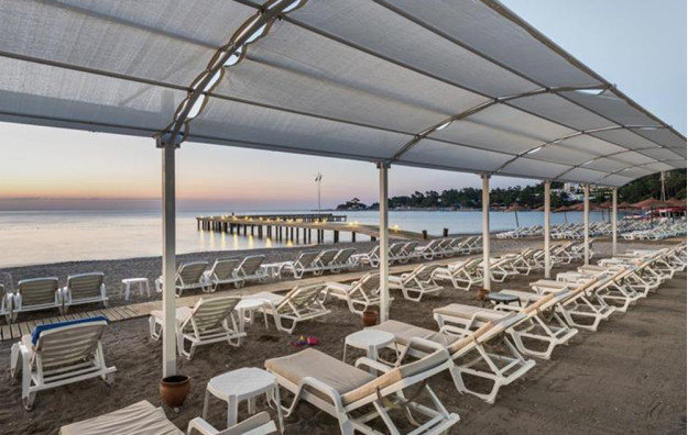 Plaža: Hotelska plaža (deo na Kleopatrinoj plaži )je udaljena 500m od hotela. Gostima je na raspolaganju shuttle bus koji vozi do plaže. Ležaljke i suncobrani koriste bez doplate. Peškiri za plažu su besplatni, svaka zamena se dodatno plaća. Bar na plaži se dodatno plaća.