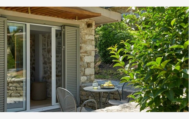 Superior Family Suite-44 m2, smešteni u prostranom vrtu Makriammos, novorenovirani porodični apartmani imaju dve nezavisne spavaće sobe sa bračnim ili dva odvojena kreveta i sofom na razvlačenje, koje dele zajedničko kupatilo sa tušem i nameštenu verandu sa pogledom na šumu.