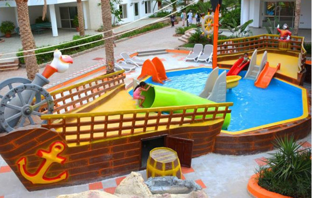 Hotelski sadržaj: Hotelski kompleks se sastoji iz glavne zgrade sa recepcijom i manjim delom smeštajnih kapaciteta van centralne zgrade. Od sadržaja poseduje: bazen (greje se u zimskim danima) sa delom za decu, dva restorana sa internacionalom kuhinjom, 3 a la carte restorana, 3 bara, teren za odbojku na pesku, noćni klub, internet cafe, dečije igraliste, animaciju za decu. WI-Fi je besplatan u lobiju dok se u sobama dodatno naplaćuje.