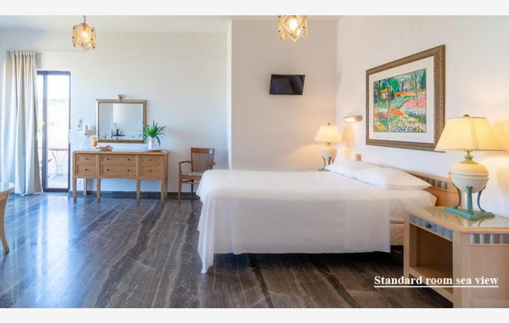 Našim putnicima su na raspolaganju sobe tipa: "standard sea view" i "family open plan". Standard sea view imaju pogled na more, dok "family open plan" imaju delimičan pogled na more i delimično na ulicu. Sobe standard mogu da prime maksimum dve odrasle osobe i jednu bebu, sastoje se iz francuskog ležaja ili dva standardna ležaja, dok porodične sobe mogu da prime maksimum četiri odrasle osobe i bebu, tri odrasle osobe, jedno dete i bebu ili dve odrasle, dvoje dece i bebu (sadrže francuski ili dva standardna ležaja dok treći i četvrti ležaj u porodičnim sobama može biti standardni ili pomoćni ležaj). U porodičnoj sobi beba može da se smesti kao peta osoba. Sobe tipa "standard sea view" i "family open plan" su po svojoj osnovnoj strukturi dvokrevetne, dok ostali ležajevi mogu biti pomoćni. Čišćenje soba se odvija šest puta nedeljno, zamena posteljine jedan put nedeljno, a zamena peškira dva puta nedeljno. Sve sobe su iste opremljenosti i imaju: SAT TV, klima uređaj (besplatno), Wi-fi internet (besplatno), telefon, sef (besplatno), kupatilo sa tuš kadom, set za pripremanje kafe i čaja, ketler, balkon ili terasu. Bebi krevetac je dostupan besplatno (obavezna najava prilikom rezervacije).