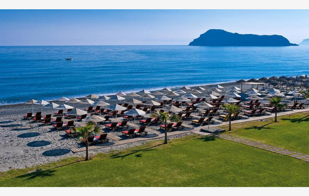 Hotelski kompleks se pruža sve do sopstvene peščane plaže, na kojoj su suncobrani i ležaljke na raspolaganju gostima besplatno.