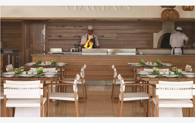 Gostima su na raspolaganju recepcija, lobi, glavni restoran, 4 a la carte restorana (uz rezervaciju) gde hotel nudi razne svetske gastronomske užitke, pica kutak na plaži, Wok & Go sa ukusima Azije, meksički restoran, pita kutak, Ouzeri-grčko meze, palačinkarnica, kantina na plaži sa američkom hranom, 6 barova (noćni bar, bar na plaži, bar kod bazena, vinski bar…), 5 liftova, 2 bazena od kojih je jedan “Adults Only”, ležaljke i suncobrani kod bazena, peškiri za bazen, dečiji bazen sa toboganom i za decu i odrasle sa spasiocem, igraonica, mini klub za decu, zabavni program u vidu muzičkih večeri, kao i brojne dnevne sportsko rekreativne aktivnosti, fitness centar, stoni fudbal, stoni tenis, WI FI internet, Spa & Welness centar (uz doplatu, masaže, salon lepote), parking. U hotelu postoje sobe prilagođene osobama sa invaliditetom.