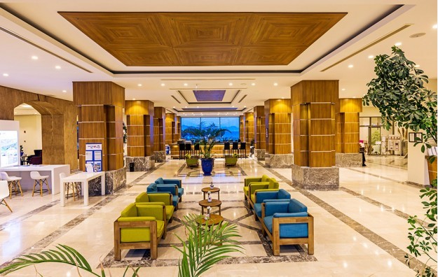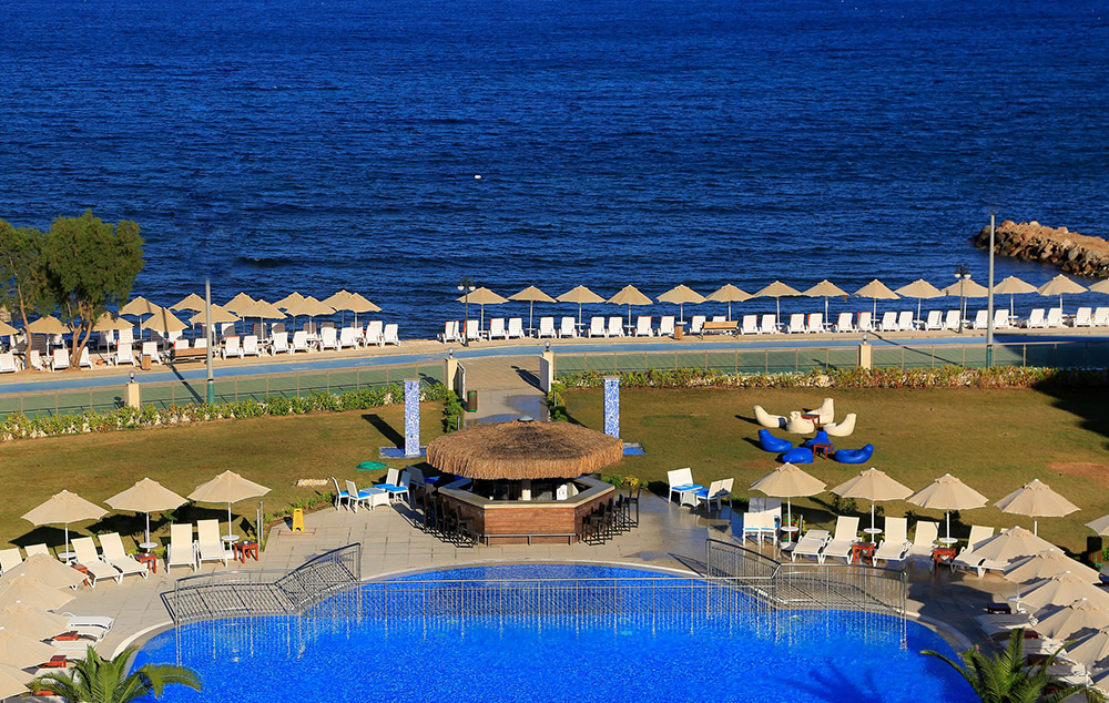 Hotelski sadržaj: Hotel ima glavni restoran i 2 a la carte restorana, 5 barova, otvoreni bazen sa delom za decu, kao i unutrašnji bazen, spa, fitnes centar, tursko kupatilo, animacije (dnevne i večernje), stoni tenis, odbojku na pesku, kartaške igre, časovi plesa, mini klub za decu (od 4-9godina), dečiji disko, igralište za decu.