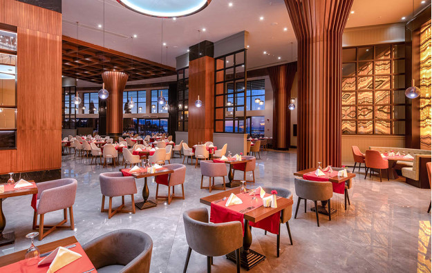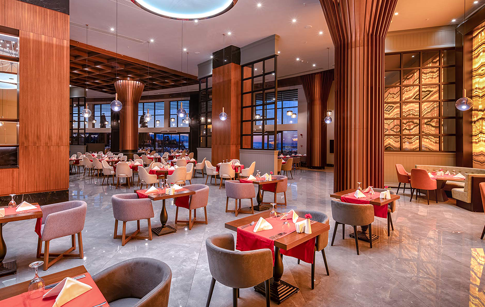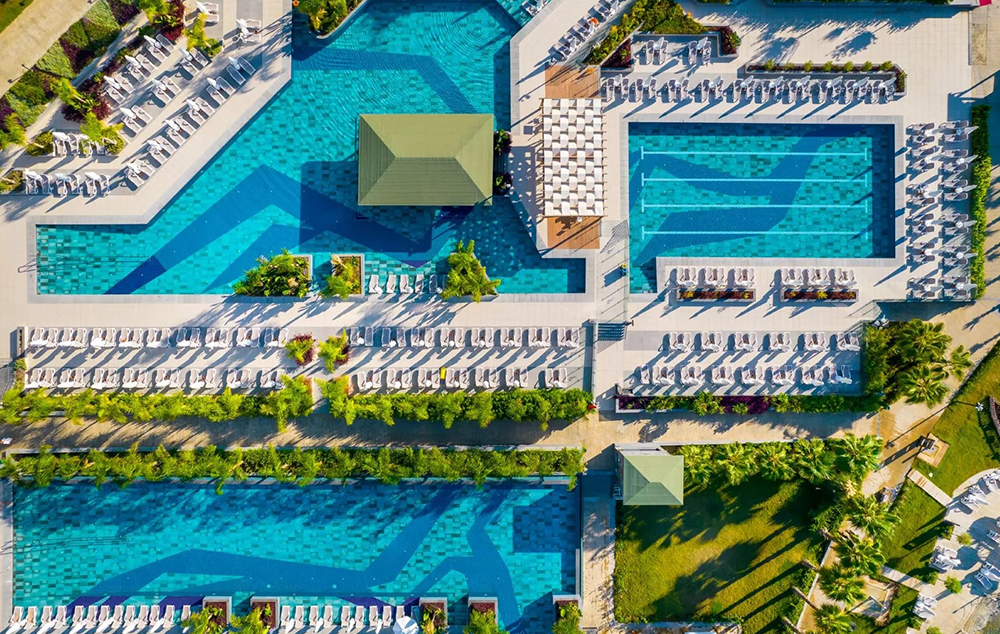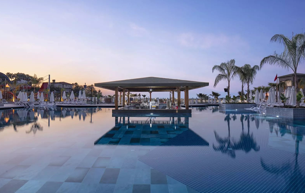 Hotelski sadržaj: Recepcija, glavni restoran, 4 a la carte restorana, 8 barova, bazeni za odrasle i decu, bazeni sa toboganima za decu i odrasle, amfiteatar, animacija, mini klub, igralište, fitnes, tursko kupatilo, sauna, odbojka na plaži, wi fi (u celom hotelu).