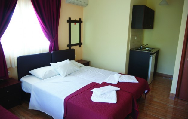 Apartment-28-30 m2, nalazi se u bungalovu ili u glavnoj zgradi sa dve odvojene sobe, sa pogledom na more ili baštu (predviđen za 2-5 osoba), čajna kuhinja bez opreme za kuvanje.