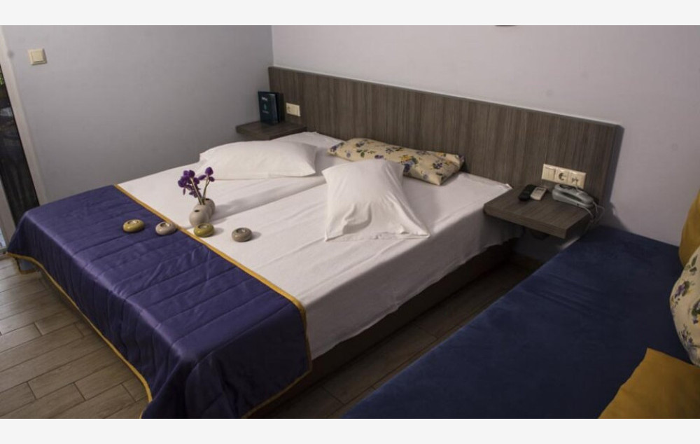 Triple room-sastoji od 2 singl kreveta spojena 90cm k 200cm i sofe 80k190. Veličina sobe je oko 17 m2. Sve sobe su na spratu. Hotel ima tri sprata i lift. Kupac može uživati u doručku a la carte uz doplatu.