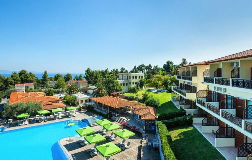 LOKACIJA: Na poluostrvu Halkidiki, Kasandra, između zelene, borovinom pokrivene planine i idiličnih plaža, u mirnom okruženju, 90 km od solunskog aerodroma, 600 m od plaže, 1.5 km od mesta Kriopigi i 2.5 km od mesta Kalitea.