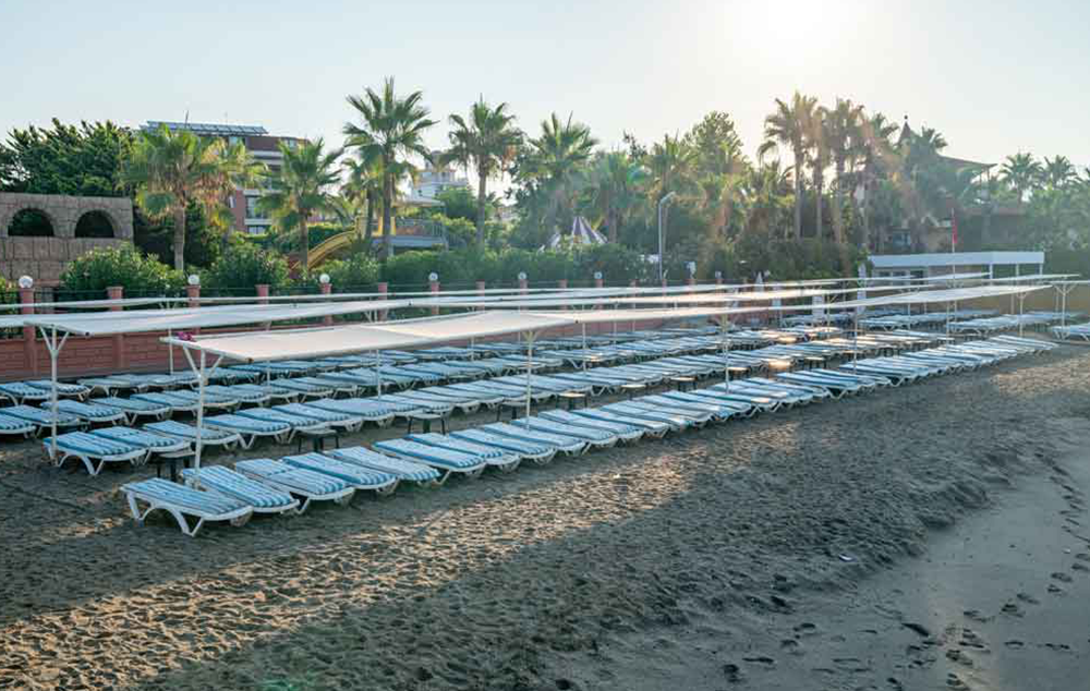 Plaža: Hotelska plaža (deo na Kleopatrinoj plaži )je udaljena 500m od hotela. Gostima je na raspolaganju shuttle bus koji vozi do plaže. Ležaljke i suncobrani koriste bez doplate. Peškiri za plažu su besplatni, svaka zamena se dodatno plaća. Bar na plaži se dodatno plaća.