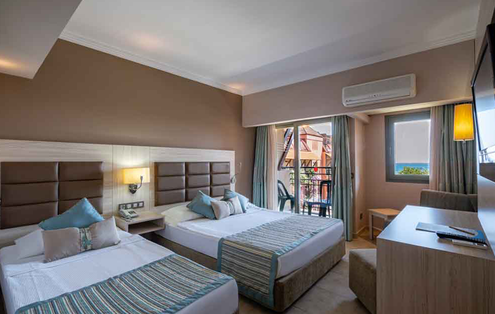 Smeštaj: Hotelski kompleks čine glavna sedmospratna zgrada i pet dvospratnih vila koje imaju ukupno 358 soba. U glavnoj zgradi se nalaze standardne sobe sa pogledom na kopno ili more i porodične sobe, dok se u vilama nalaze vila standardne sobe i vila porodične sobe. Hotel poseduje i sobe za osobe sa posebnim potrebama.