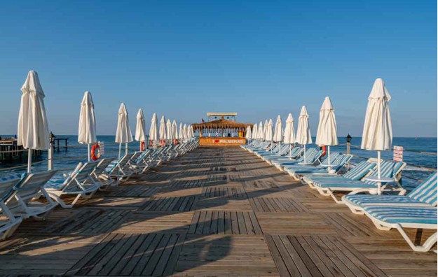 Plaža: Hotel poseduje sopstvenu peščano-šljunkovitu plažu, gde su ležaljke, suncobrani i peškiri kao i bar na plaži besplatni za goste hotela.
