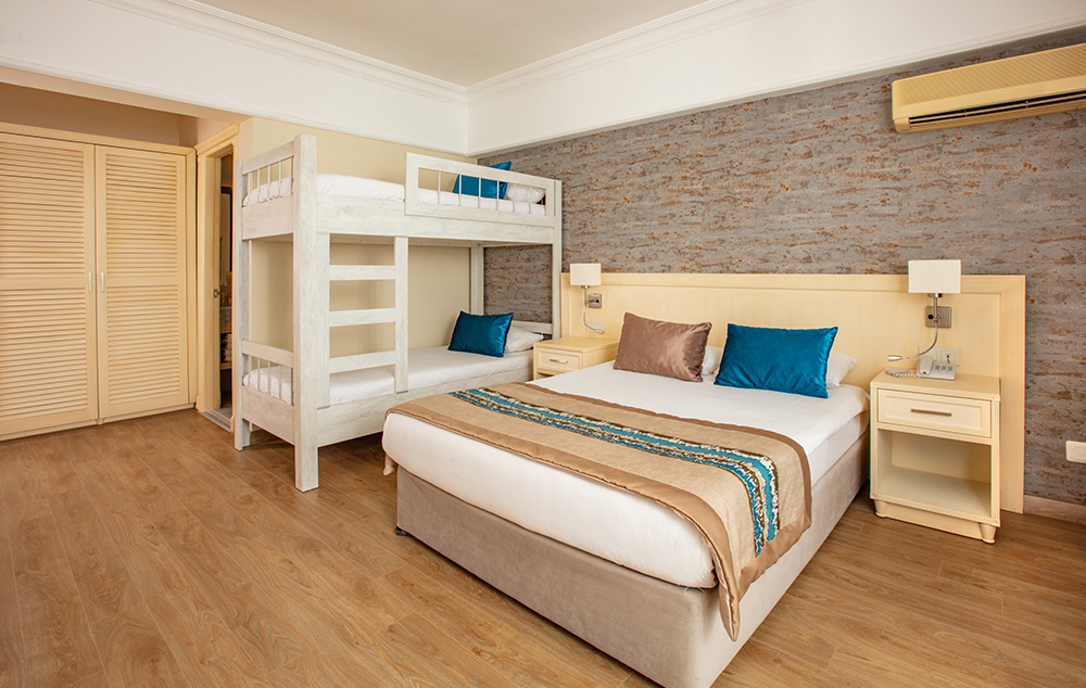 U većini hotela postoje porodične sobe (family room) za dve odrasle osobe i dvoje ili troje dece. U svim hotelima gde postoji mogućnost za krevetac za bebe (baby cot) – radi se na upit.