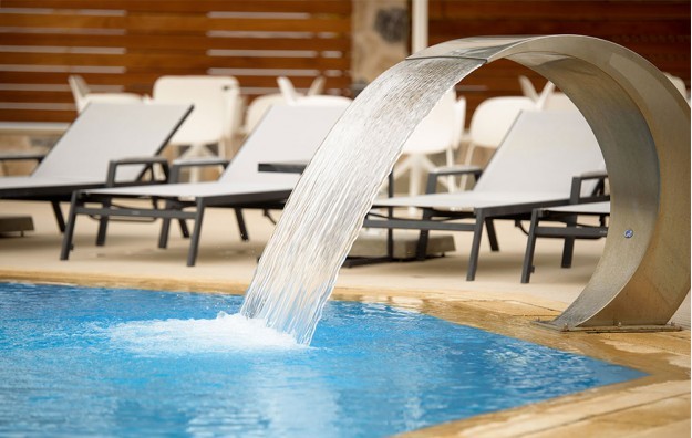 SADRŽAJ: recepcija, bazen, bar pored bazena, ležaljke i suncobrani, restoran.