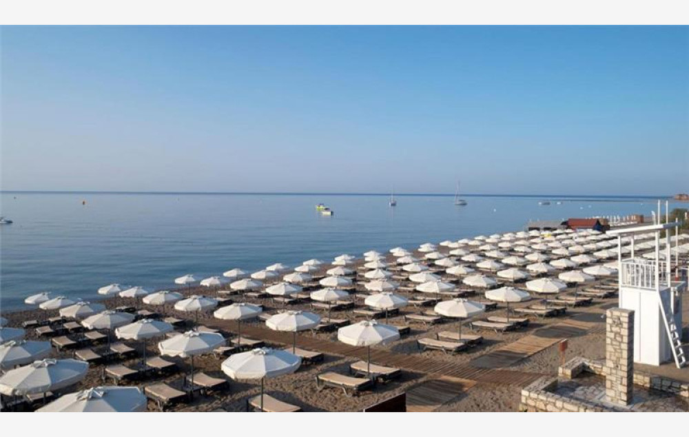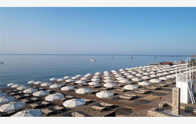 Hotel se nalazi na 250 metara od peščano šljunkovite hotelske plaže do koje se stiže kroz podzemni prolaz. Na plaži je gostima na raspolaganju veliki broj suncobrana i ležaljki kao i nekoliko barova u kojima se služe obroci i pića tokom celog dana (uključeno u cenu). Suncobrani i ležaljke su uključeni u cenu, dok se sportovi na vodi dodatno plaćaju. Peškiri za plažu su na raspolaganju gostima bez doplate. Za sezonu 2025. biće otvoren Akva park sa 7 tobogana i akva toranj sa 4 tobogana.