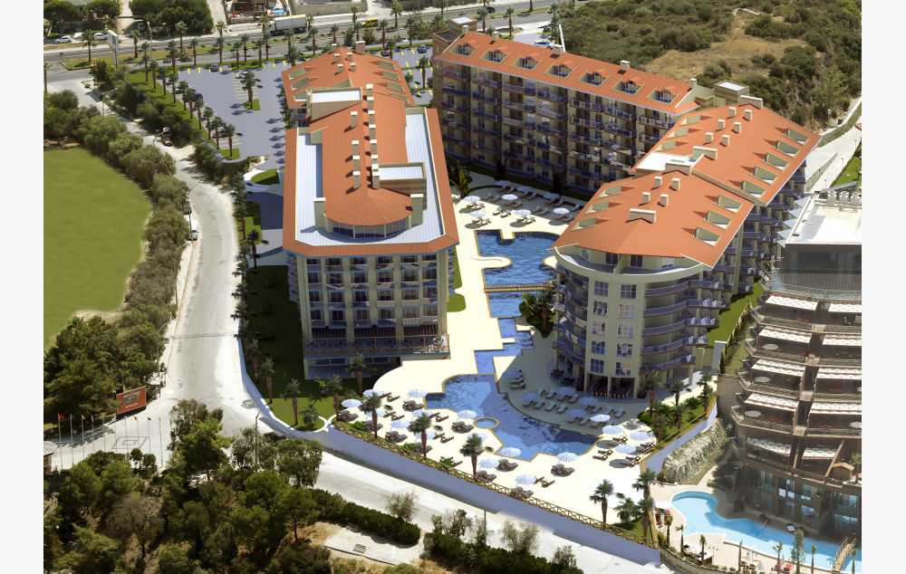 Položaj: hotel se nalazi na 2km od centra Kušadasija i 140km od aerodroma u Bodrumu. Izgrađen je 2018.godine i prostire se na površini od 18.000 m². Hotelski kompleks se sastoji od 4 bloka od po 6 spratova.