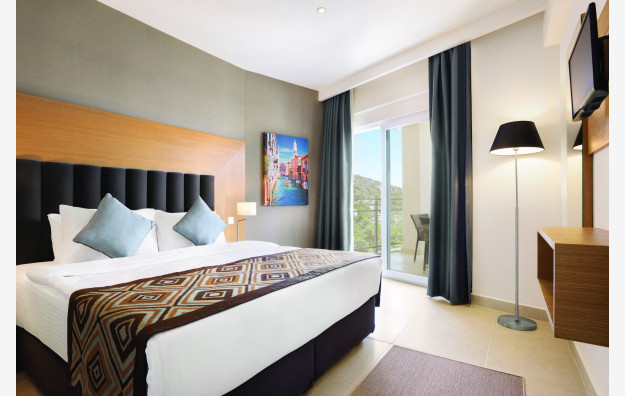 Family suite sa pogledom na kopno ili direktnim pogledom na more imaju oko 71m2 i sastoje se od dve prostorije odvojene vratima. Isto su opremljene kao superior sobe. Maksimalno boravi 5 odraslih osoba i 1 dete do 3 godine.
