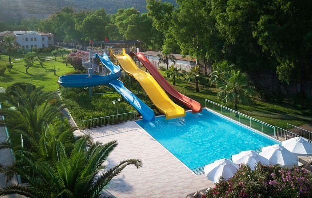 Hotelski sadržaj: glavni restoran, 3 a la carte restorana (turski, italijanski – jednom nedeljno besplatno i riblji – uz doplatu), 4 bara, 4 spoljašnja bazena (1 bazen sa 3 tobogana), unutrašnji bazen, dečiji bazen, sauna, tursko kupatilo, parno kupatilo, masaža, aerobik u vodi, dečiji klub (4-12 godina), igralište, internet kafe, 3 konferencijske sale, stoni tenis, sportovi na vodi, 2 teniska terena, odbojka na pesku, aerobik u vodi, futsal, košarka, mini golf, teretana, diskoteka, dnevna i večernja animacija, wifi.