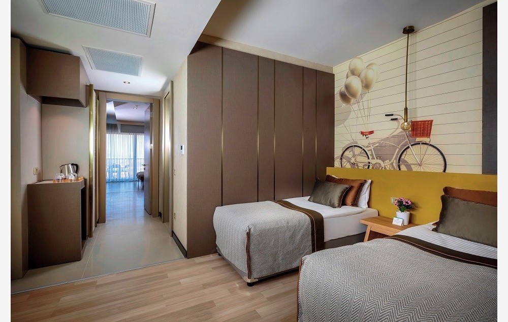 Family sobe (55m2). Sastoje se od dve spavaće sobe i dva kupatila. Sadrže francuski ležaj u jednoj i dva odvojena ležaja u drugoj prostoriji. Maksimalno mogu da borave četiri odrasle osobe i jedno dete do 13 godina.
